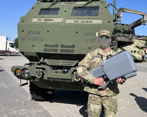 পোর্টেবল ইউএভি হ্যান্ডহেল্ড এন্টি ড্রোন 400MHz-6GHz ফুল ব্যান্ড সনাক্তকরণ 3KM জ্যামিং HS102B-PC-C